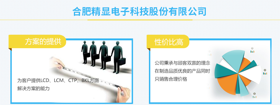 ?合肥精顯電子科技股份有限公司成立于2012年,由液晶行業(yè)知名企業(yè)廈門精顯電子有限公司投資建設(shè),是一家研發(fā)、生產(chǎn)、銷售高品質(zhì)液晶屏(LCD)、液晶顯示模塊(LCM)、背光(LED)、電容式觸摸屏(CTP)等節(jié)能環(huán)保產(chǎn)品并能為顧客提供解決方案的高新科技企業(yè)。 ?公司占地55畝,擁有建筑面積超過20000平米和潔凈廠房5400平米。 ?公司擁有一個超過15年以上LCD行業(yè)運營制造經(jīng)驗的團隊。 ?公司獲得研發(fā)專利20余項。 ?公司通過C-TPAT認(rèn)證,ISO9001:2008認(rèn)證,產(chǎn)品通過了ROHS、REACH。 ?我們產(chǎn)品廣泛應(yīng)用于智能儀表(水表,電表,氣表)、家電、儀器儀表、計量器械、文教 器具、UPS電源、智能手機機、平板電腦等電子產(chǎn)品的顯示和控制。目前我們已樹立了良好的品牌形象,并與眾多公司(如GE, Ja...更多>